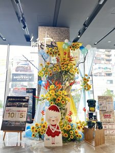夏らしいひまわりのオブジェを展示中です