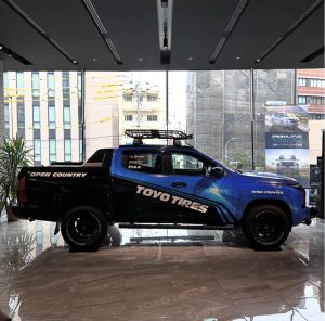 TOYOタイヤのブランドカラーである「青を灯した」ブルーのラッピングに