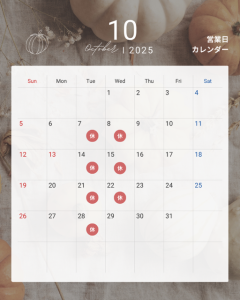 🎃10月店休日のお知らせ🎃 ■ 2025.09.22