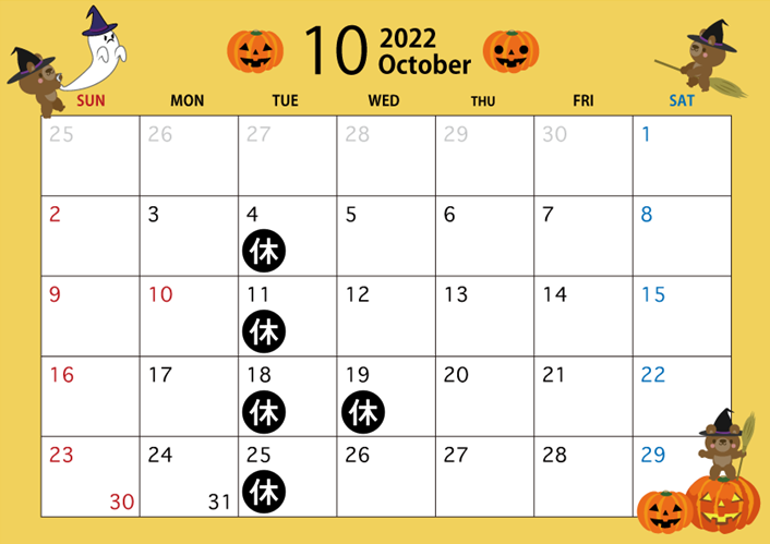 10月は、4日(火)、11日(火)、18日(火)、19日(水)、25日(火)