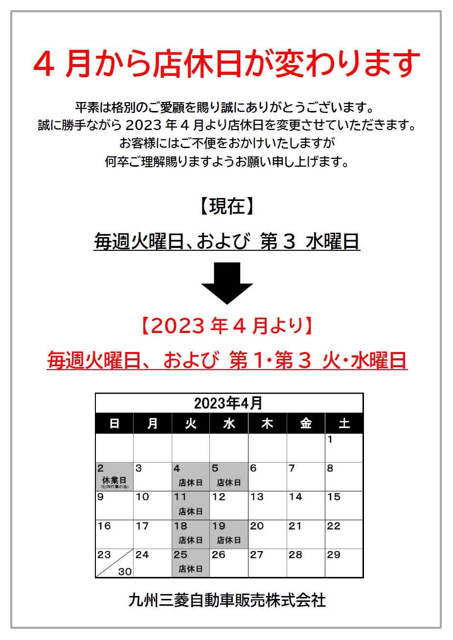 九州三菱自動車販売株式会社 宗像店からのお知らせ