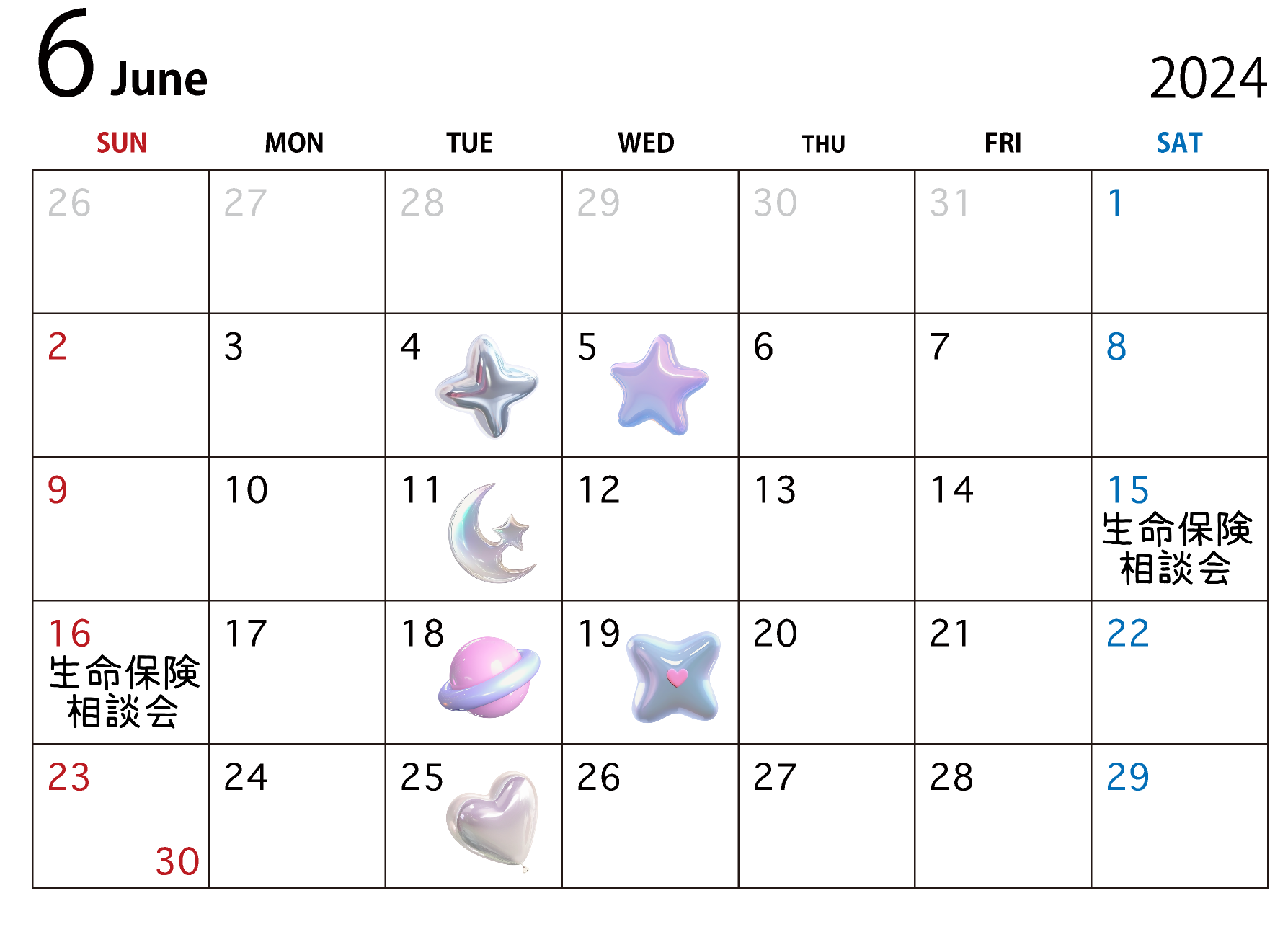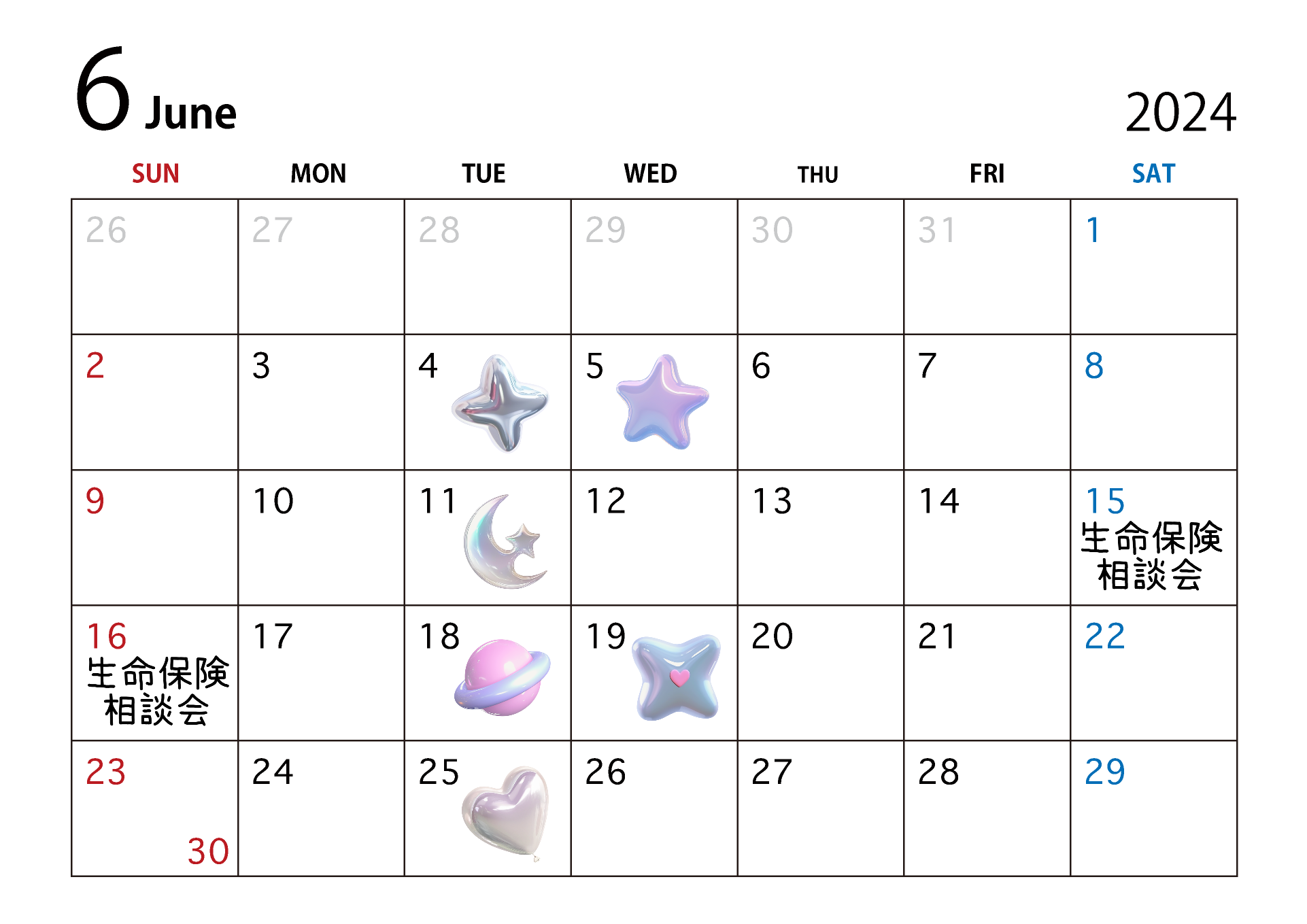 6月のお知らせです💭毎週火曜日・第1第3水曜日はお休みをいただいております。
