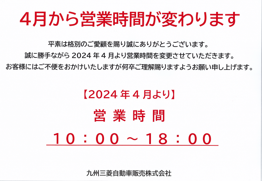 九州三菱自動車販売株式会社 糸島店からのお知らせ