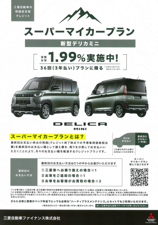 ★デリカミニ予約受付中 ~スーパーマイカープラン 1.99%?!~★