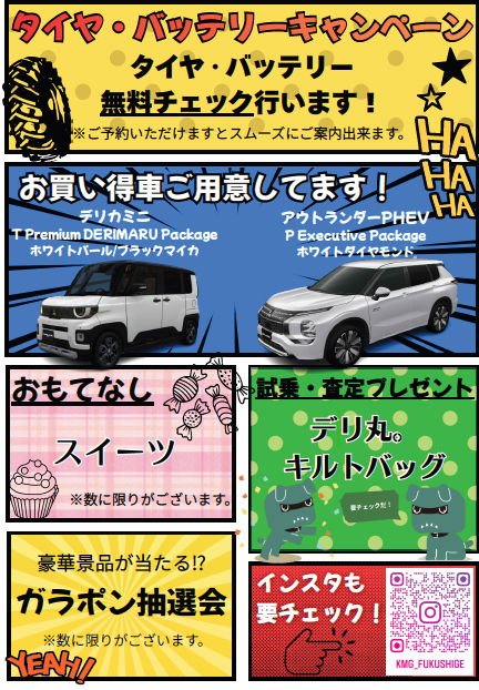 さらにタイヤ・バッテリー無料チェック実施中!!