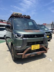 人気のデリカミニに、木目調のフロントガード・リヤラダーなどオリジナルスタイルでカッコイイ![]()