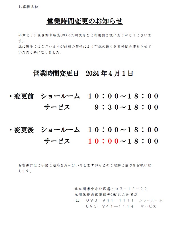 九州三菱自動車販売株式会社 北九州支店からのお知らせ