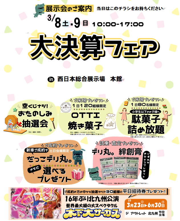 3月8日(土)・9日(日) 西日本総合展示場で大決算フェア!