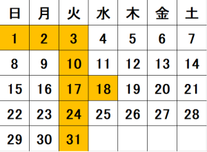 下記の通り、毎週火曜日と第3水曜日に加えて、
