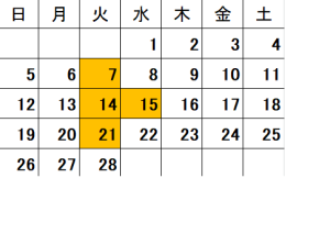 2月の定休日のお知らせです