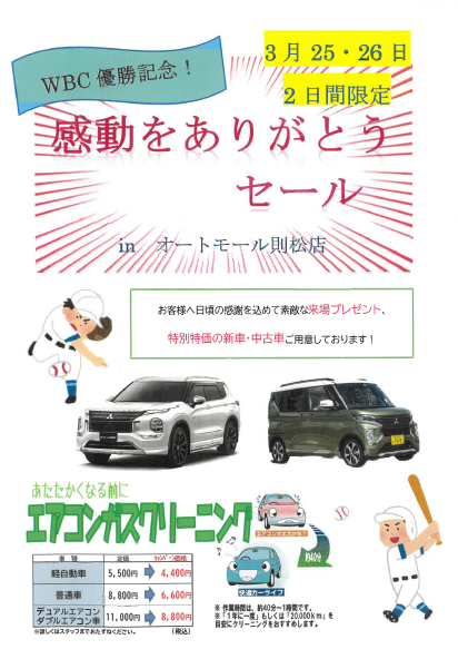 九州三菱自動車販売株式会社 オートモール則松店からのお知らせ
