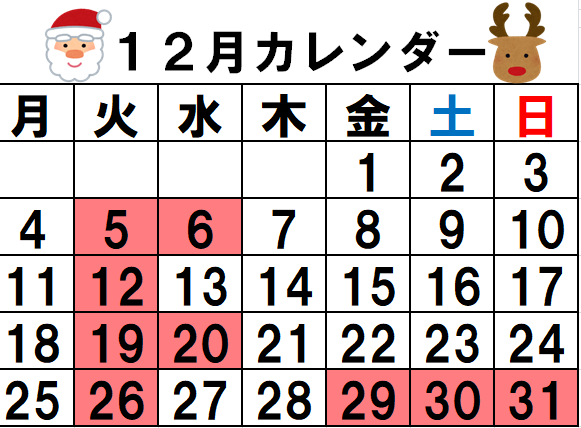 12月は大変ご予約が混み合いますので、早めのご予約をおすすめします!!