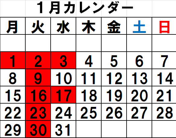 ★ 1月31日は、月末火曜日の為、営業しております!!