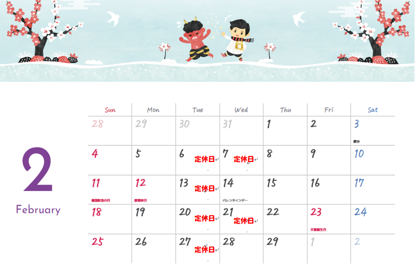 毎週火曜日・第1第3水曜日はお休みをいただいております。