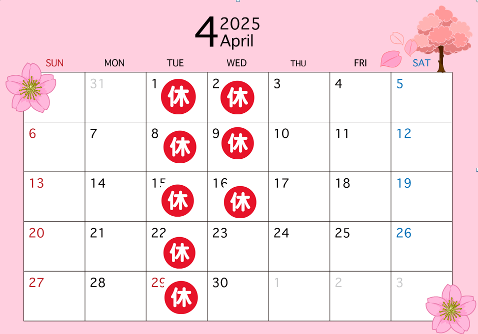 毎週火曜日と第1・2・3水曜日が定休日となります!