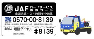 お車でお困りの際はJAFへご連絡くださいますようお願い申し上げます。