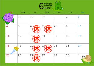 6月の定休日は毎週火曜日と第1・3水曜日がお休みとなります。