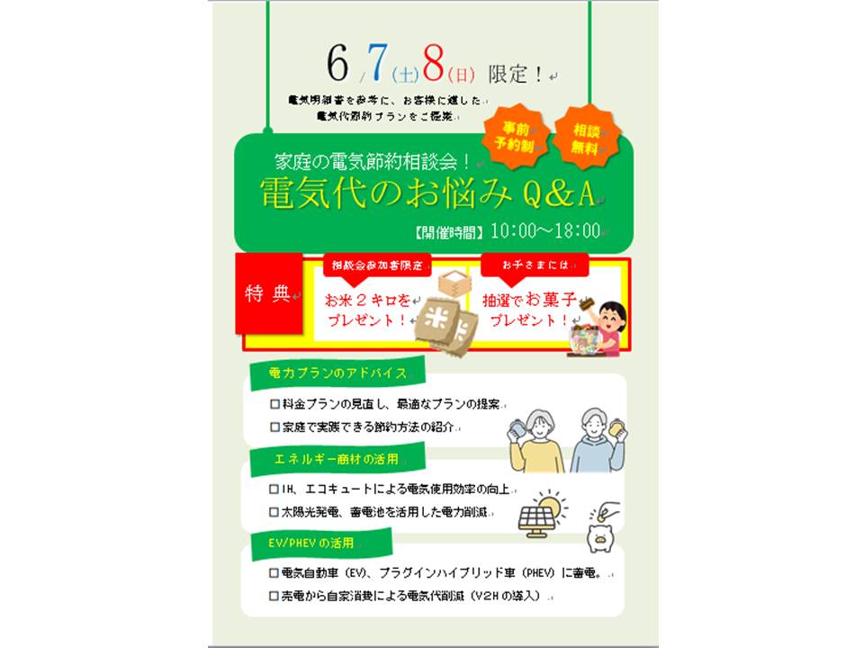 6月7日(土)・8日(日)は電気節約相談会開催💡