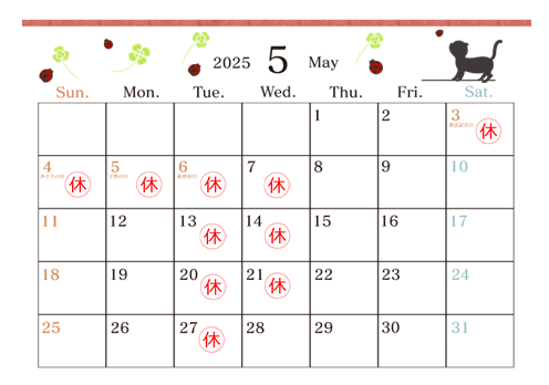5月3日~7日までゴールデンウイークのため長期休暇となります。