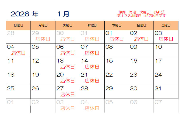 年末年始店休日のお知らせ