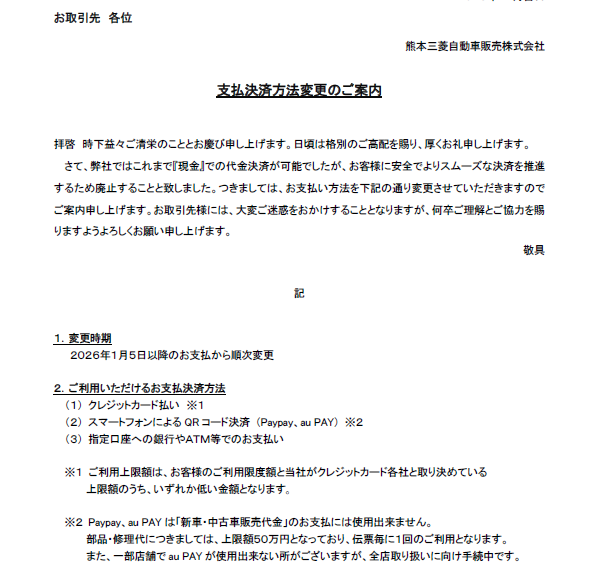 熊本三菱自動車販売株式会社 熊本本店からのお知らせ