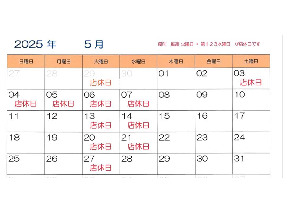 5月3日(土)から5月7日(水)まで店休日とさせていただきます。