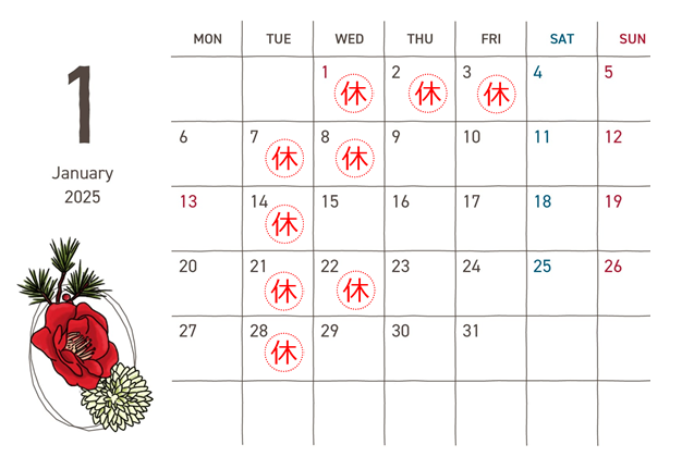 12月29日(日)~1月3日(金)までお休みをいただきます。
