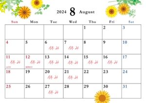 🌻8月定休日のお知らせ🌻