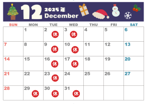 🎄12月の定休日のお知らせです🎄