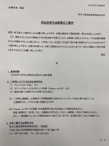2026年1月5日(月)~お支払方法が変更になります。