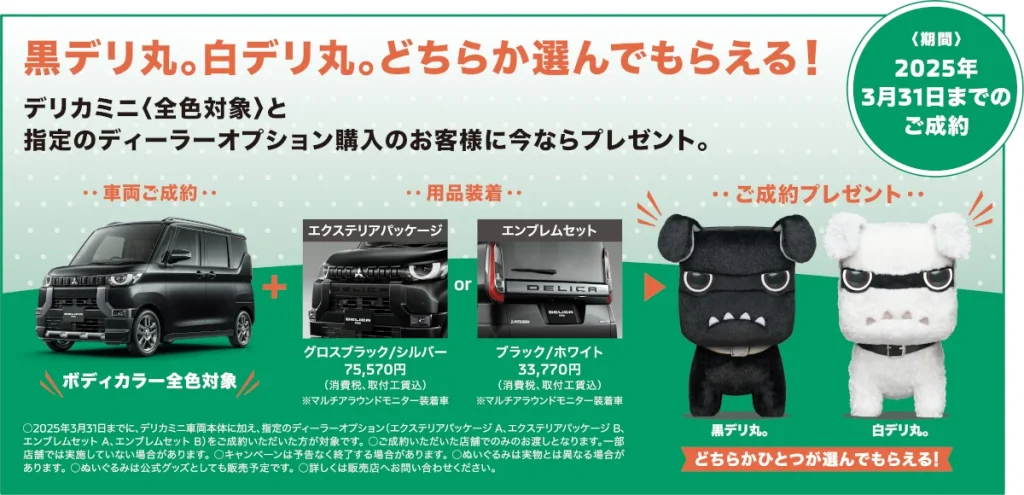 新車のデリカミニをご成約、さらに指定のディーラーオプション購入すると