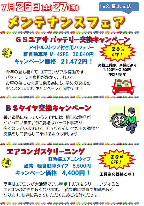 【久留米支店】26(土)27(日)はメンテナンスフェア開催🚩