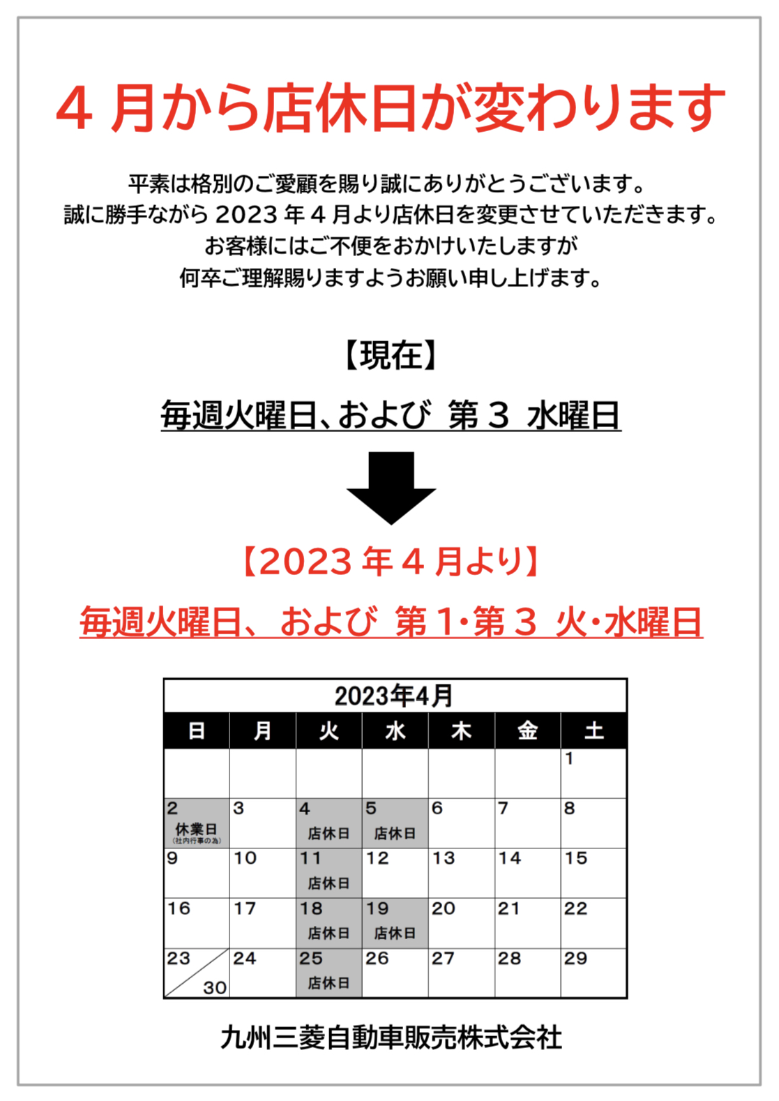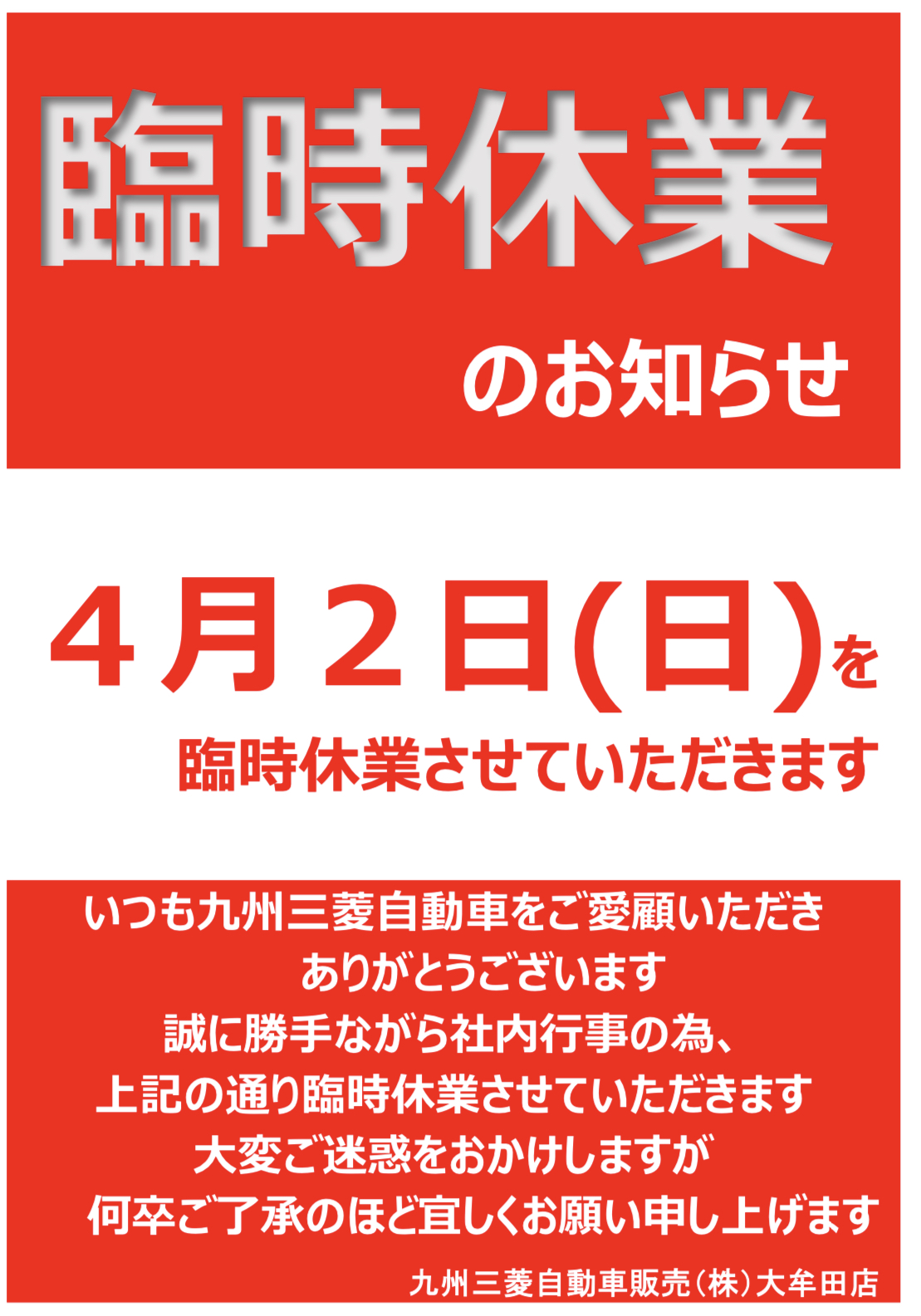 九州三菱自動車販売株式会社 大牟田店からのお知らせ