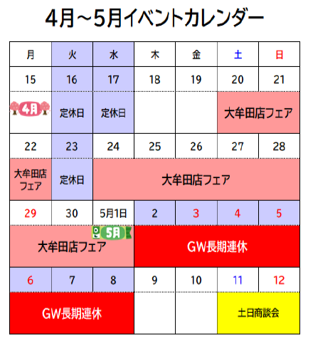 5月1日(水)まで春の大牟田店フェアを開催中です。