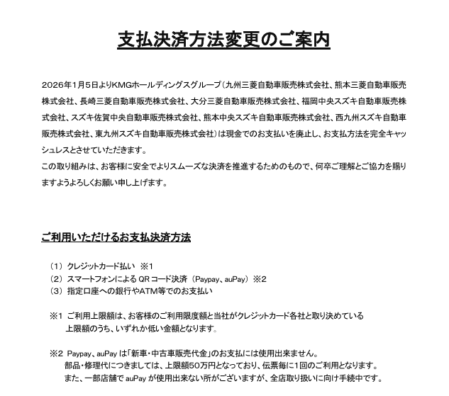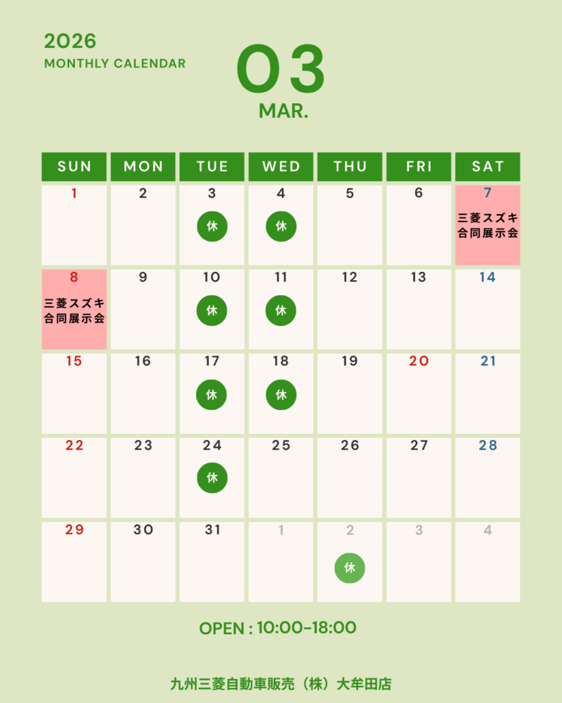 九州三菱自動車販売株式会社 大牟田店からのお知らせ