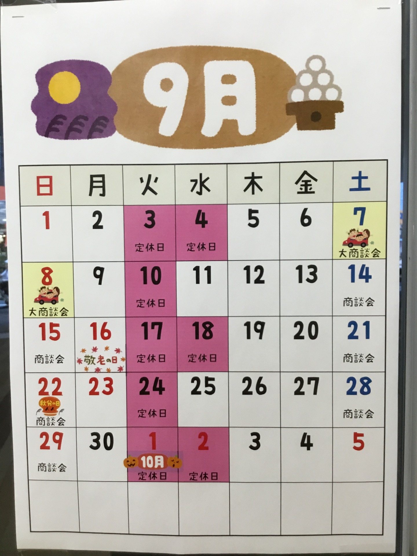 9月も毎週火曜日・第一第三水曜日が定休日となっておりますが