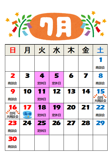 7月の定休日のお知らせ