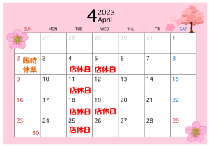 🌱甘木店4月の店休日と臨時休業のお知らせ📢