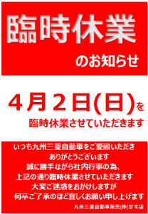 九州三菱自動車販売株式会社 甘木店からのお知らせ