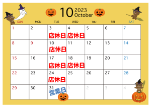 ☆10月の店休日のお知らせ☆