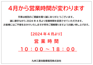 来月4月1日(月) より営業時間を変更させていただきます。