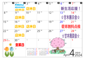 ☆ 甘木店4月イベントカレンダー ☆