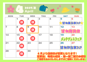 🌸🌸 甘木店4月のイベント情報&店休日のお知らせ 🌷🌷