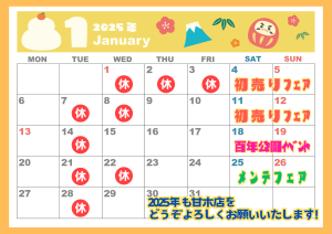 🎄 1月のイベント&年末年始の店休日のお知らせ ⛄