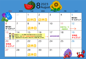 🐶甘木店8月の店休日のお知らせ🍧🎇