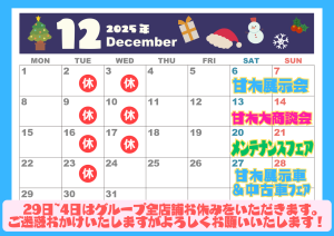 🍂🍂🍂 甘木店12月のイベント情報 ⛄⛄