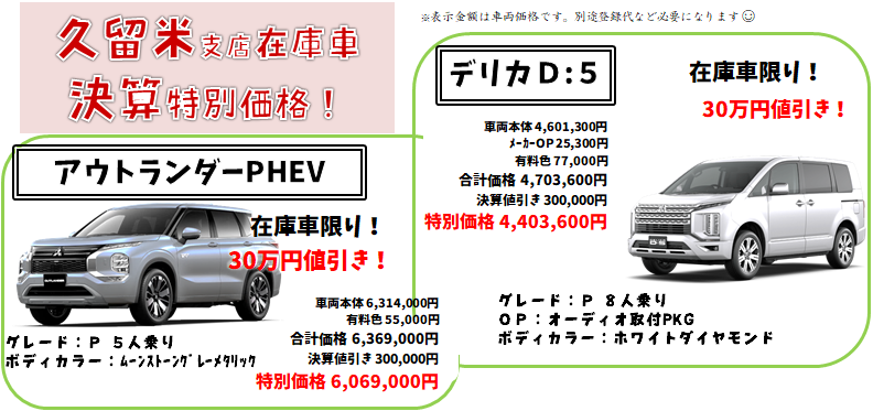 九州三菱自動車販売株式会社 柳川店からのお知らせ