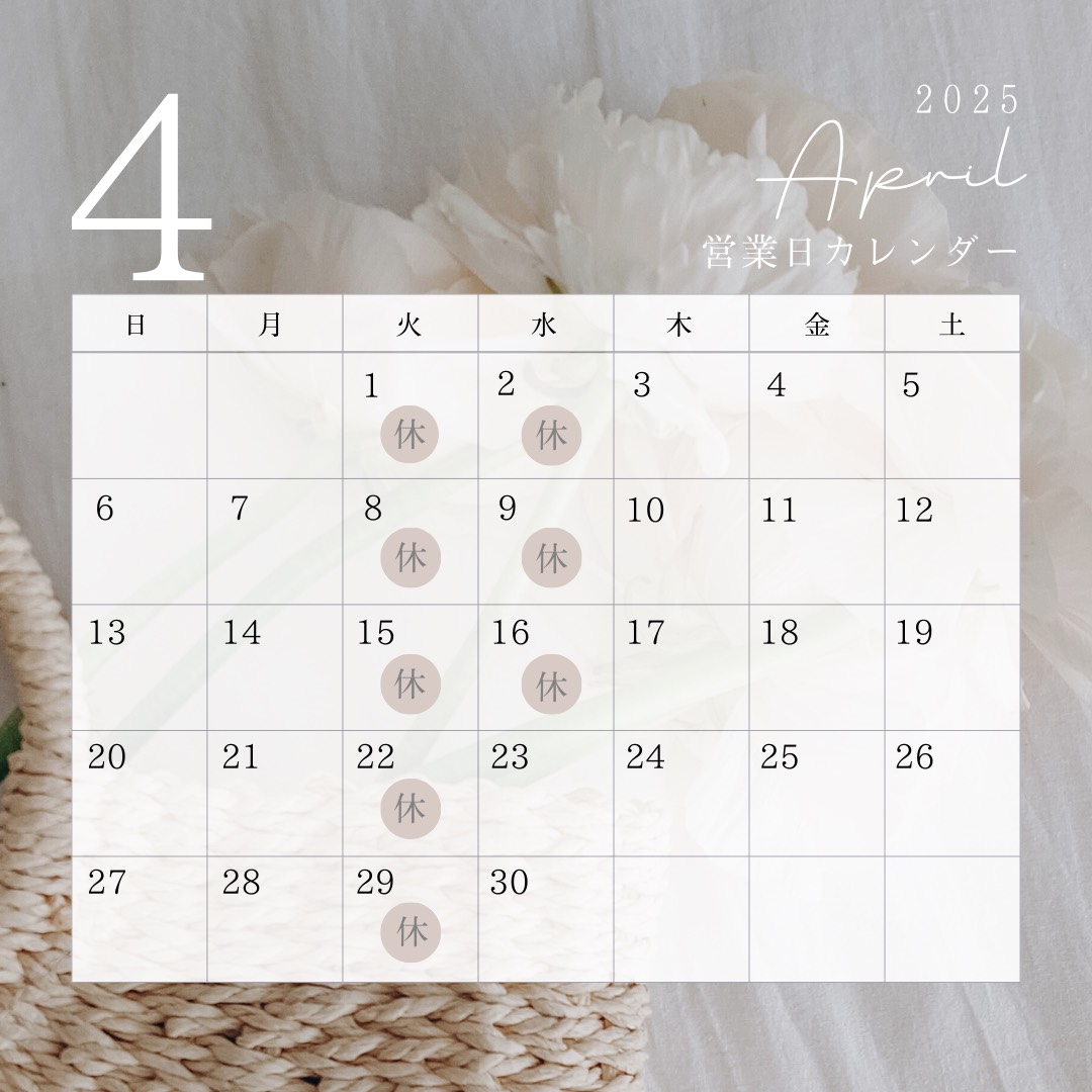 2025年4月より店休日を変更させていただきます。