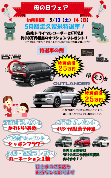 九州三菱自動車販売株式会社 柳川店からのお知らせ