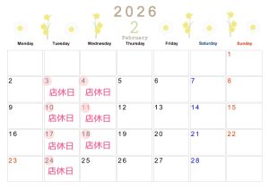 さて、今回は2月の店休日をお知らせいたします!